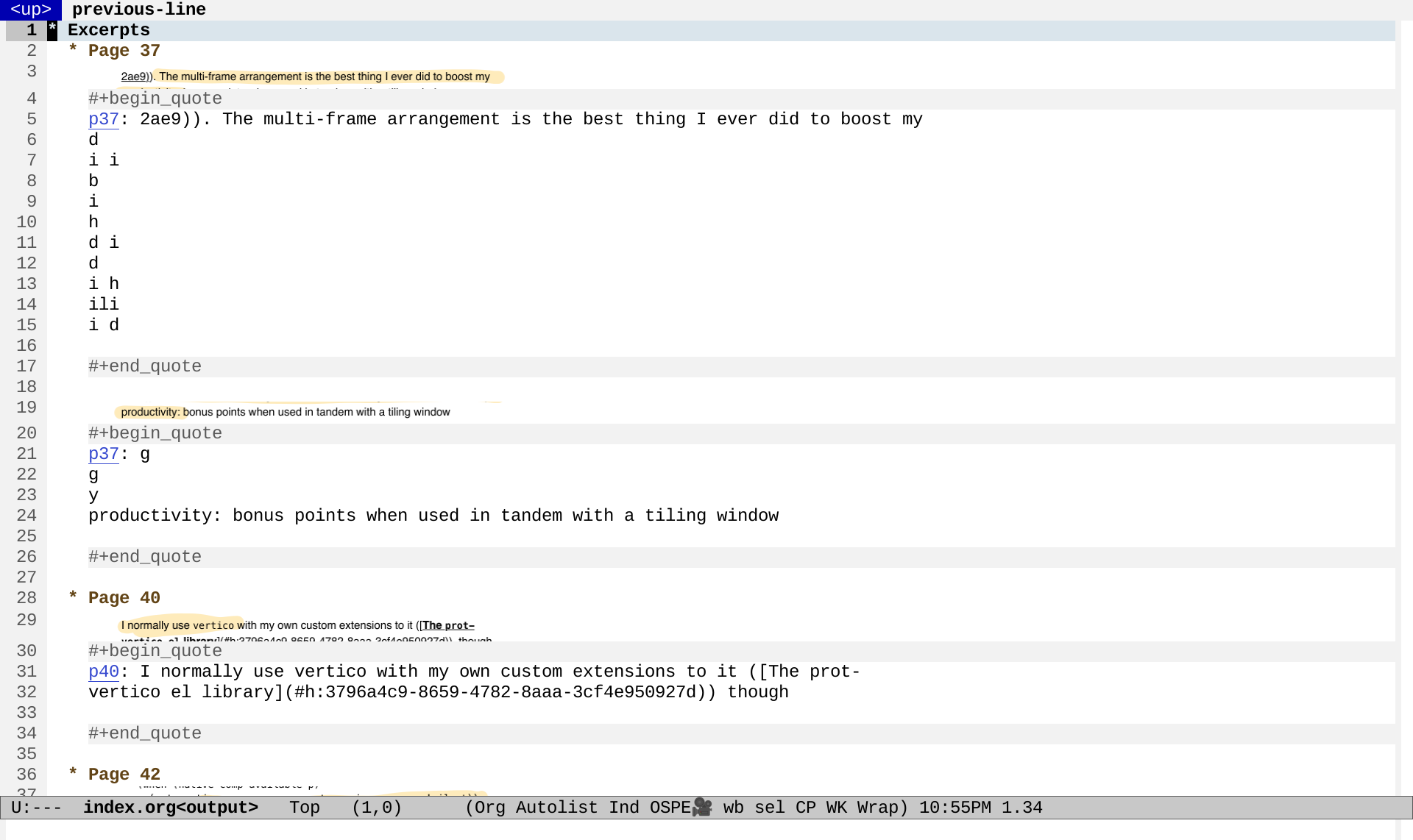 Figure 1: Screenshot of Org Mode file with link previews